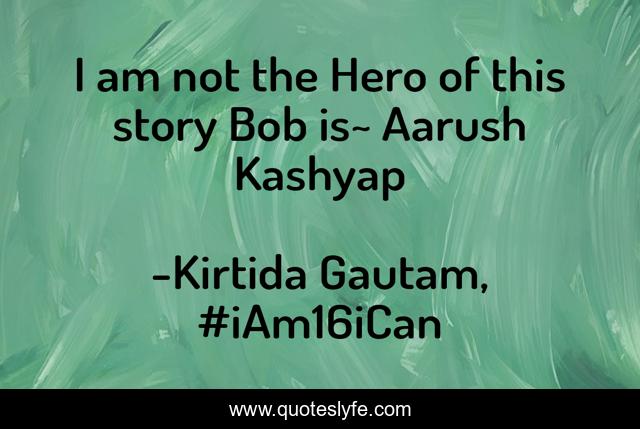This page presents the quote "I am not the Hero of this story Bob is~ Aarush Kashyap". Author of this quote is Kirtida Gautam, #iAm16iCan. This quote is about aarush-kashyap, monomyth, mbti, psychology, teenagers,.