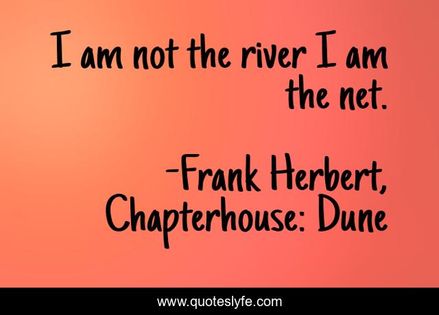 This page presents the quote "I am not the river I am the net.". Author of this quote is Frank Herbert, Chapterhouse: Dune. .