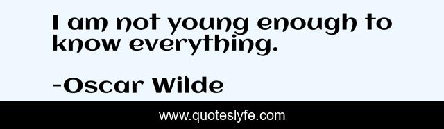 This page presents the quote "I am not young enough to know everything.". Author of this quote is Oscar Wilde. .