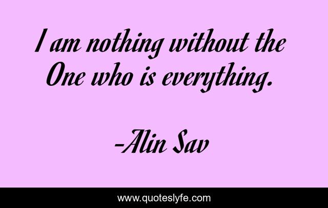 This page presents the quote "I am nothing without the One who is everything.". Author of this quote is Alin Sav. .