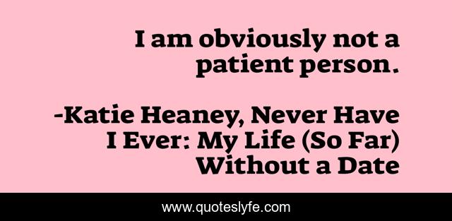 "Katie Heaney, Never Have I Ever: My Life (So Far) Without a Date Quotes." Quoteslyfe.com, 2025. Fri. 05 Dec. 2025. <https://www.quoteslyfe.com/quote/I-am-obviously-not-a-patient-person-160710>.
