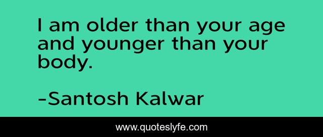 This page presents the quote "I am older than your age and younger than your body.". Author of this quote is Santosh Kalwar. This quote is about body, age,.