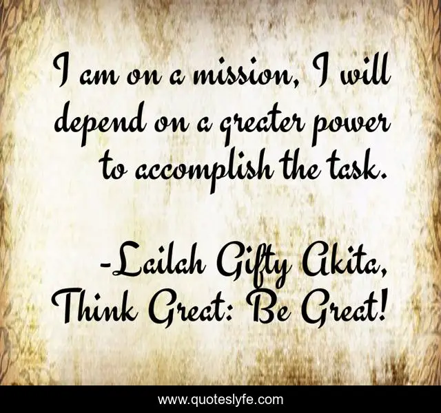 "Lailah Gifty Akita, Think Great: Be Great! Quotes." Quoteslyfe.com, 2025. Fri. 05 Dec. 2025. <https://www.quoteslyfe.com/quote/I-am-on-a-mission-I-will-121347>.
