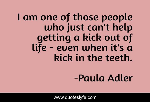 This page presents the quote "I am one of those people who just can't help getting a kick out of life - even when it's a kick in the teeth.". Author of this quote is Paula Adler. .
