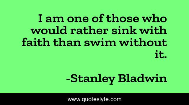 This page presents the quote "I am one of those who would rather sink with faith than swim without it.". Author of this quote is Stanley Bladwin. .