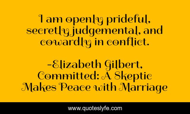 "Elizabeth Gilbert, Committed: A Skeptic Makes Peace with Marriage Quotes." Quoteslyfe.com, 2025. Sun. 07 Dec. 2025. <https://www.quoteslyfe.com/quote/I-am-openly-prideful-secretly-judgemental-and-160654>.