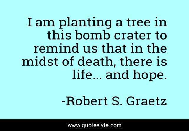 This page presents the quote "I am planting a tree in this bomb crater to remind us that in the midst of death, there is life... and hope.". Author of this quote is Robert S. Graetz. This quote is about nonviolence, forgiveness, hope,.