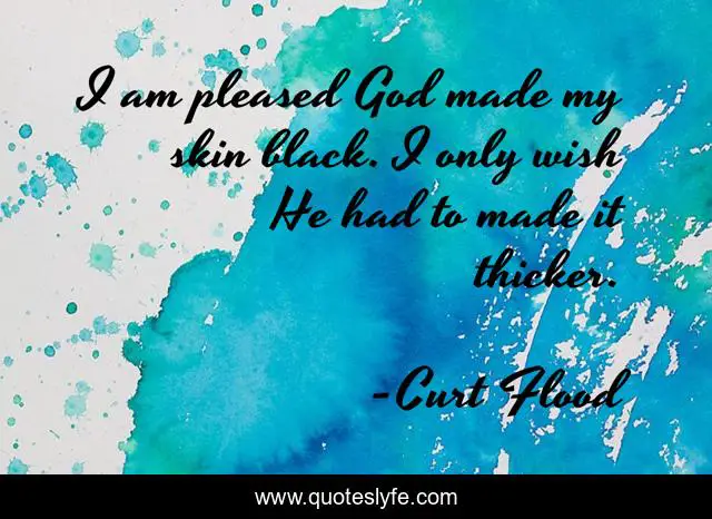 This page presents the quote "I am pleased God made my skin black. I only wish He had to made it thicker.". Author of this quote is Curt Flood. This quote is about racism, sovereignty-of-god,.