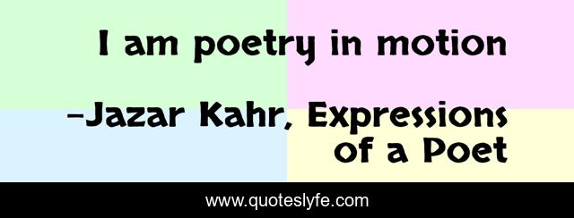 This page presents the quote "I am poetry in motion". Author of this quote is Jazar Kahr, Expressions of a Poet. This quote is about poet, quotes, jazar, poetry, kahr,.
