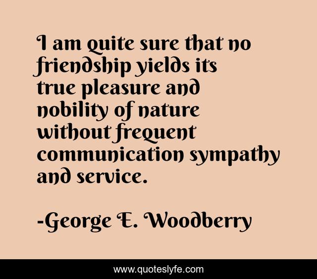 This page presents the quote "I am quite sure that no friendship yields its true pleasure and nobility of nature without frequent communication sympathy and service.". Author of this quote is George E. Woodberry. .