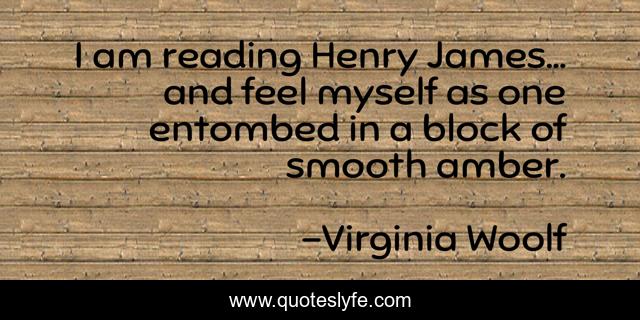 This page presents the quote "I am reading Henry James… and feel myself as one entombed in a block of smooth amber.". Author of this quote is Virginia Woolf. This quote is about authors, insults,.