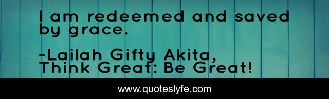 "Lailah Gifty Akita, Think Great: Be Great! Quotes." Quoteslyfe.com, 2025. Sun. 07 Dec. 2025. <https://www.quoteslyfe.com/quote/I-am-redeemed-and-saved-by-grace-209093>.