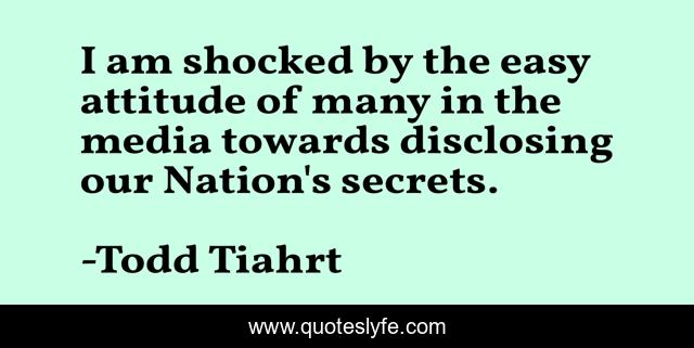 This page presents the quote "I am shocked by the easy attitude of many in the media towards disclosing our Nation's secrets.". Author of this quote is Todd Tiahrt. This quote is about media, easy,.