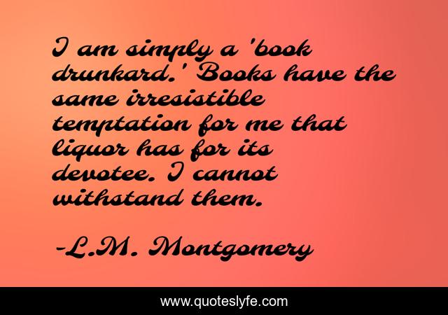 This page presents the quote "I am simply a 'book drunkard.' Books have the same irresistible temptation for me that liquor has for its devotee. I cannot withstand them.". Author of this quote is L.M. Montgomery. .
