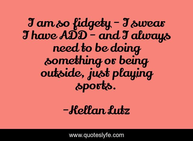 This page presents the quote "I am so fidgety - I swear I have ADD - and I always need to be doing something or being outside, just playing sports.". Author of this quote is Kellan Lutz. .