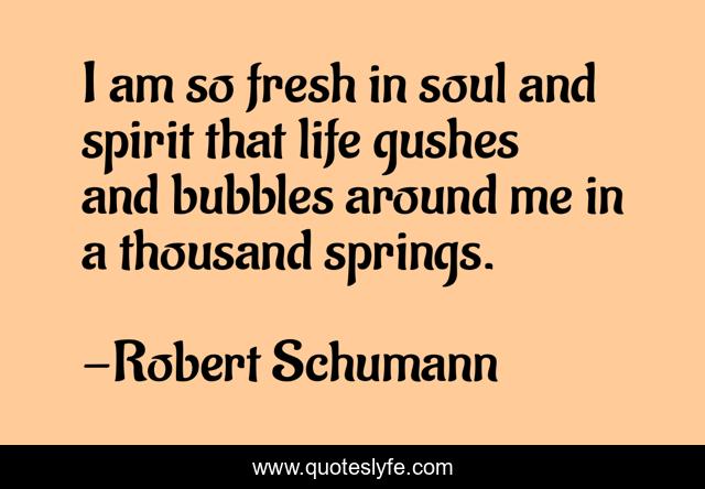 This page presents the quote "I am so fresh in soul and spirit that life gushes and bubbles around me in a thousand springs.". Author of this quote is Robert Schumann. This quote is about life, soul,.