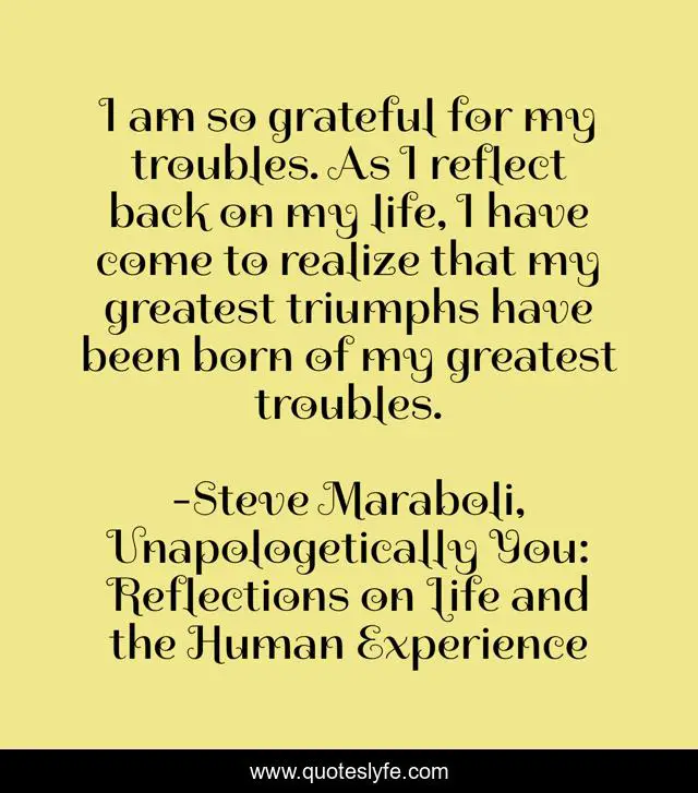 "Steve Maraboli, Unapologetically You: Reflections on Life and the Human Experience Quotes." Quoteslyfe.com, 2025. Fri. 05 Dec. 2025. <https://www.quoteslyfe.com/quote/I-am-so-grateful-for-my-troubles-3153>.