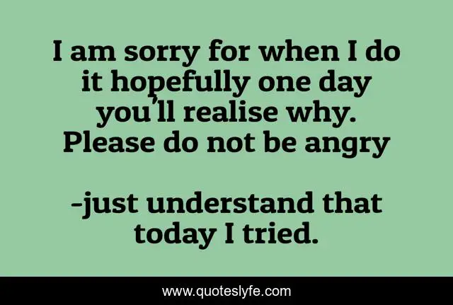 This page presents the quote "I am sorry for when I do it hopefully one day you'll realise why. Please do not be angry". Author of this quote is just understand that today I tried.. .