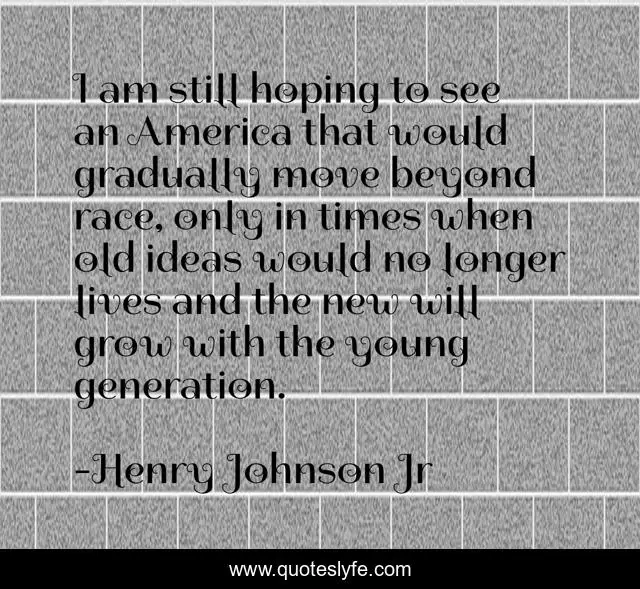 This page presents the quote "I am still hoping to see an America that would gradually move beyond race, only in times when old ideas would no longer lives and the new will grow with the young generation.". Author of this quote is Henry Johnson Jr. This quote is about martin-luther-king-jr, privileges, race-card, racism-in-america, race-america, america,.