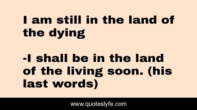 "I shall be in the land of the living soon. (his last words) Quotes." Quoteslyfe.com, 2025. Sat. 06 Dec. 2025. <https://www.quoteslyfe.com/quote/I-am-still-in-the-land-of-3122>.