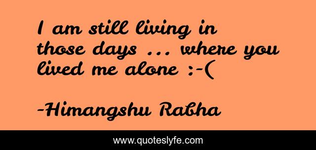This page presents the quote "I am still living in those days ... where you lived me alone :-(". Author of this quote is Himangshu Rabha. .