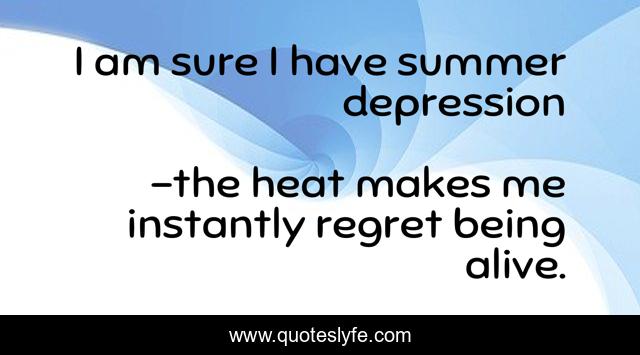 "the heat makes me instantly regret being alive. Quotes." Quoteslyfe.com, 2025. Mon. 08 Dec. 2025. <https://www.quoteslyfe.com/quote/I-am-sure-I-have-summer-depression-113781>.