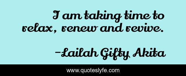"Lailah Gifty Akita Quotes." Quoteslyfe.com, 2025. Sun. 07 Dec. 2025. <https://www.quoteslyfe.com/quote/I-am-taking-time-to-relax-renew-147641>.