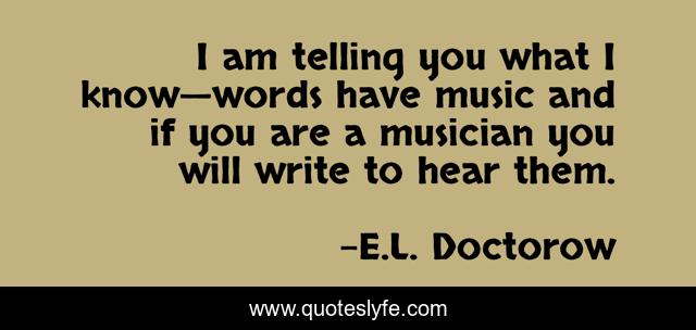 This page presents the quote "I am telling you what I know—words have music and if you are a musician you will write to hear them.". Author of this quote is E.L. Doctorow. This quote is about music, words, writing,.