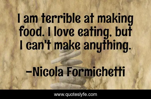 This page presents the quote "I am terrible at making food. I love eating, but I can't make anything.". Author of this quote is Nicola Formichetti. This quote is about love, eating, affection,.