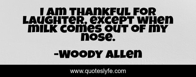 This page presents the quote "I am thankful for laughter, except when milk comes out of my nose.". Author of this quote is Woody Allen. This quote is about laughter, milk,.