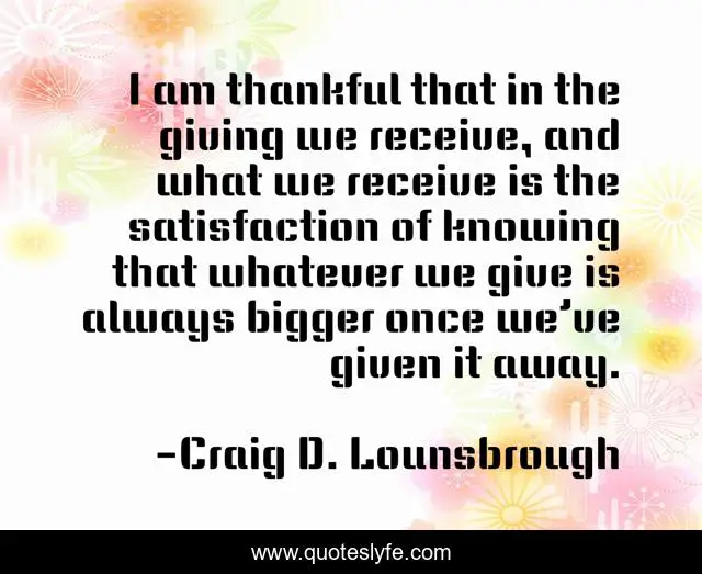 "Craig D. Lounsbrough Quotes." Quoteslyfe.com, 2025. Sat. 06 Dec. 2025. <https://www.quoteslyfe.com/quote/I-am-thankful-that-in-the-giving-198434>.