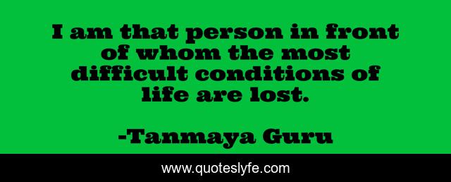 This page presents the quote "I am that person in front of whom the most difficult conditions of life are lost.". Author of this quote is Tanmaya Guru. .