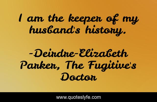 This page presents the quote "I am the keeper of my husband's history.". Author of this quote is Deirdre-Elizabeth Parker, The Fugitive's Doctor. This quote is about keeper, husband, history,.