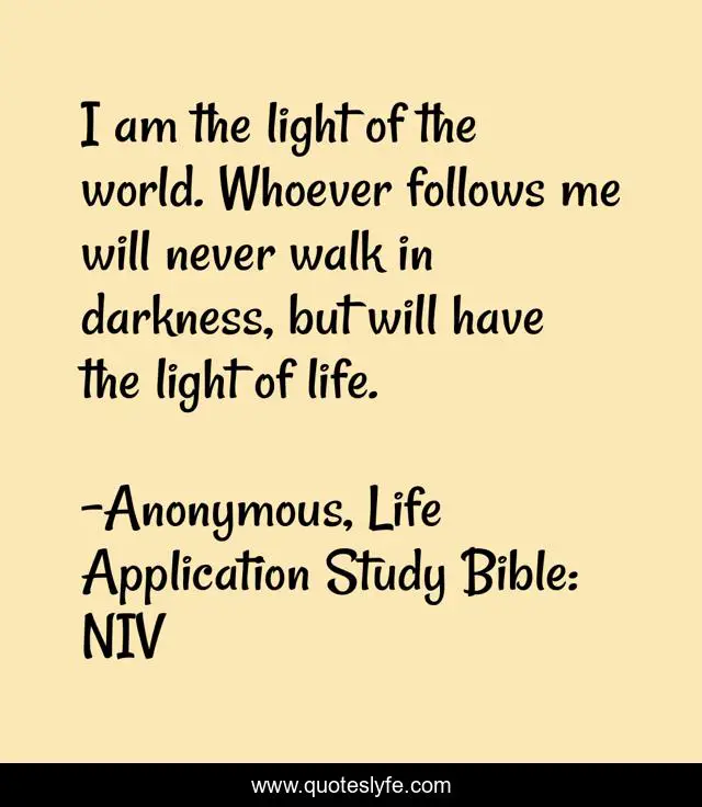 "Anonymous, Life Application Study Bible: NIV Quotes." Quoteslyfe.com, 2025. Sat. 06 Dec. 2025. <https://www.quoteslyfe.com/quote/I-am-the-light-of-the-world-118241>.