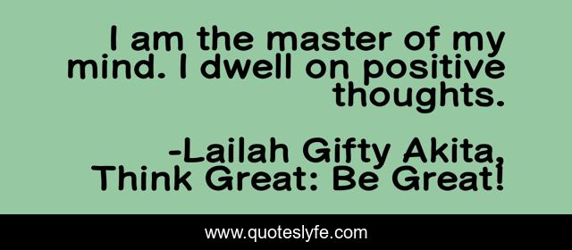"Lailah Gifty Akita, Think Great: Be Great! Quotes." Quoteslyfe.com, 2025. Tue. 09 Dec. 2025. <https://www.quoteslyfe.com/quote/I-am-the-master-of-my-mind-140493>.