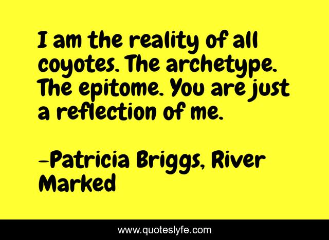 This page presents the quote "I am the reality of all coyotes. The archetype. The epitome. You are just a reflection of me.". Author of this quote is Patricia Briggs, River Marked. This quote is about coyote, mercy,.
