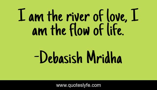This page presents the quote "I am the river of love, I am the flow of life.". Author of this quote is Debasish Mridha. This quote is about life, love, knowledge, inspirational, intelligence, philosophy, wisdom, quotes, affection,.