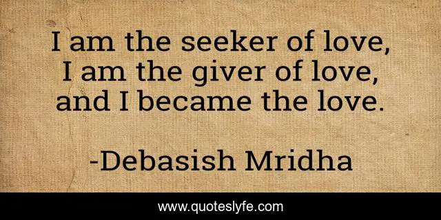 This page presents the quote "I am the seeker of love, I am the giver of love, and I became the love.". Author of this quote is Debasish Mridha. This quote is about life, love, knowledge, inspirational, intelligence, philosophy, wisdom, quotes, affection,.