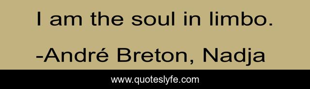 This page presents the quote "I am the soul in limbo.". Author of this quote is André Breton, Nadja. This quote is about surrealism, nadja, art, soul,.