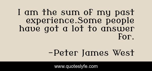 "Peter James West Quotes." Quoteslyfe.com, 2025. Sat. 06 Dec. 2025. <https://www.quoteslyfe.com/quote/I-am-the-sum-of-my-past-215077>.