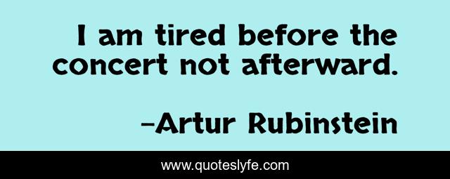 This page presents the quote "I am tired before the concert not afterward.". Author of this quote is Artur Rubinstein. .