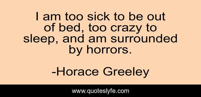 This page presents the quote "I am too sick to be out of bed, too crazy to sleep, and am surrounded by horrors.". Author of this quote is Horace Greeley. .