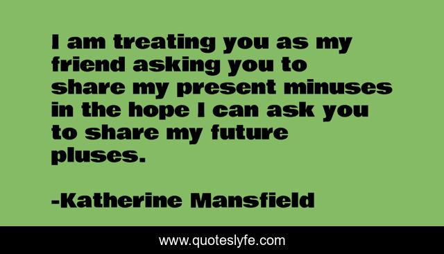 This page presents the quote "I am treating you as my friend asking you to share my present minuses in the hope I can ask you to share my future pluses.". Author of this quote is Katherine Mansfield. .