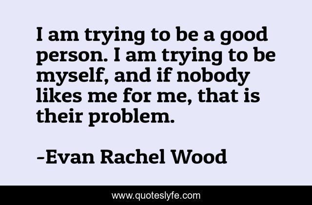 This page presents the quote "I am trying to be a good person. I am trying to be myself, and if nobody likes me for me, that is their problem.". Author of this quote is Evan Rachel Wood. This quote is about me, myself,.