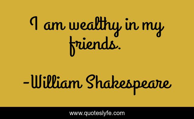 This page presents the quote "I am wealthy in my friends.". Author of this quote is William Shakespeare. .
