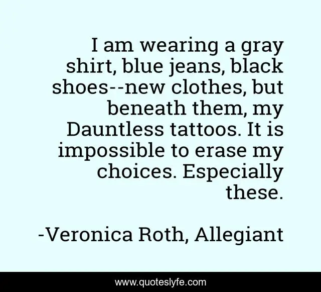 "Veronica Roth, Allegiant Quotes." Quoteslyfe.com, 2025. Mon. 08 Dec. 2025. <https://www.quoteslyfe.com/quote/I-am-wearing-a-gray-shirt-blue-174979>.