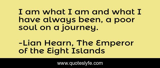 This page presents the quote "I am what I am and what I have always been, a poor soul on a journey.". Author of this quote is Lian Hearn, The Emperor of the Eight Islands. This quote is about life, journey, soul,.