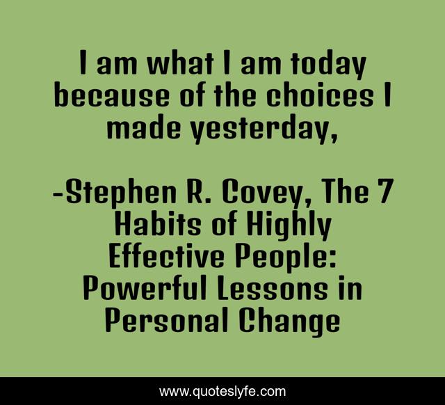 "Stephen R. Covey, The 7 Habits of Highly Effective People: Powerful Lessons in Personal Change Quotes." Quoteslyfe.com, 2025. Fri. 05 Dec. 2025. <https://www.quoteslyfe.com/quote/I-am-what-I-am-today-because-106160>.