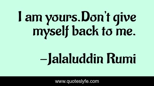 This page presents the quote "I am yours.Don't give myself back to me.". Author of this quote is Jalaluddin Rumi. This quote is about love, affection,.