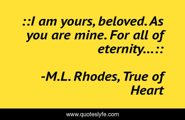 This page presents the quote "::I am yours, beloved. As you are mine. For all of eternity…::". Author of this quote is M.L. Rhodes, True of Heart. This quote is about romance, true-love, love, affection,.
